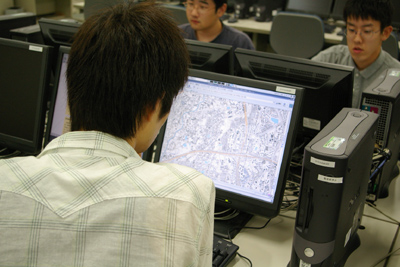 最初に、この授業で体験することについてのガイダンスを実施した。その後、インターネットを用いて、国土地理院の地形図・空中写真閲覧サービスなど、人文地理学を学ぶうえで有用なウェブサイトを閲覧した。