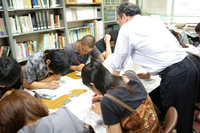 明治18年に測量された仮製二万分の一地形図を用いて、当時の待兼山キャンパス周辺の村境をなぞる作業を行い、柴原村や北刀根山村などがどの溜池を利用していたかを明らかにした。次に、凡例に従って待兼山キャンパス周辺の土地利用がどのようであったかを色分けする作業を行った。
