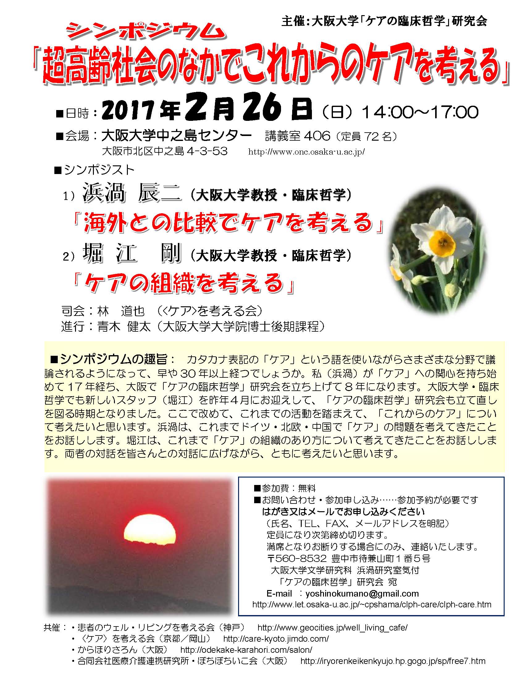 | 主 催 | 大阪大学「ケアの臨床哲学」研究会 |