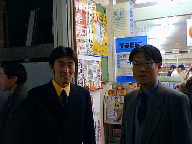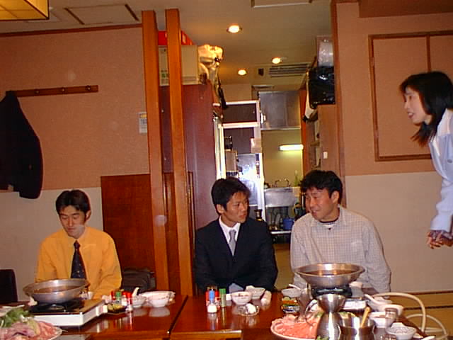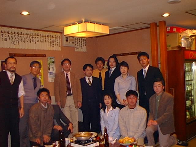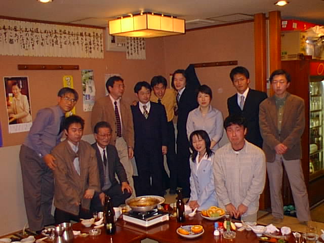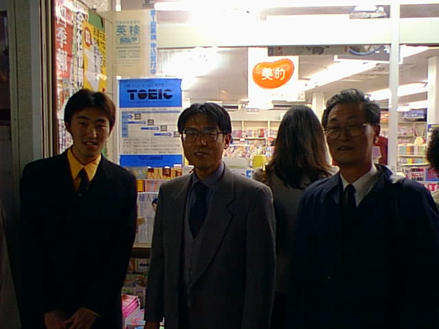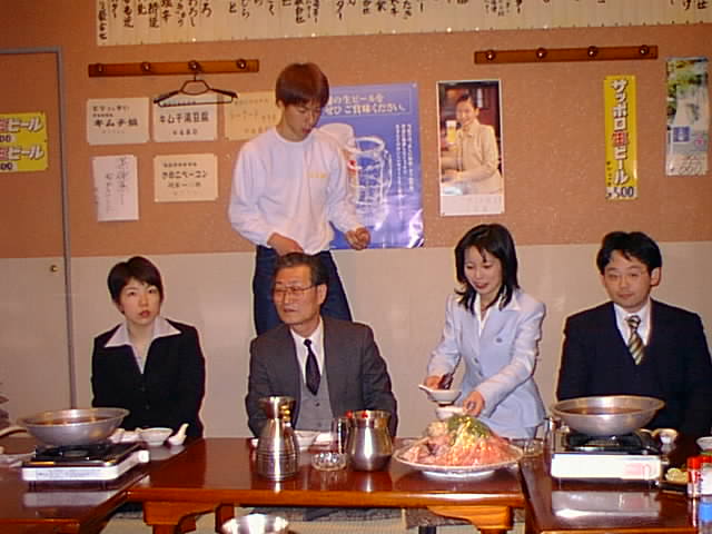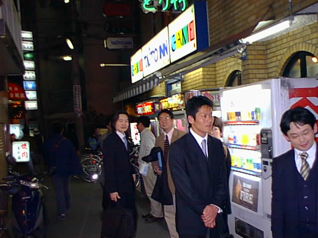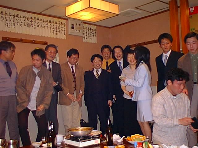 送別会がおわり、ほろ酔いの前で別れを惜しんでいる様子。